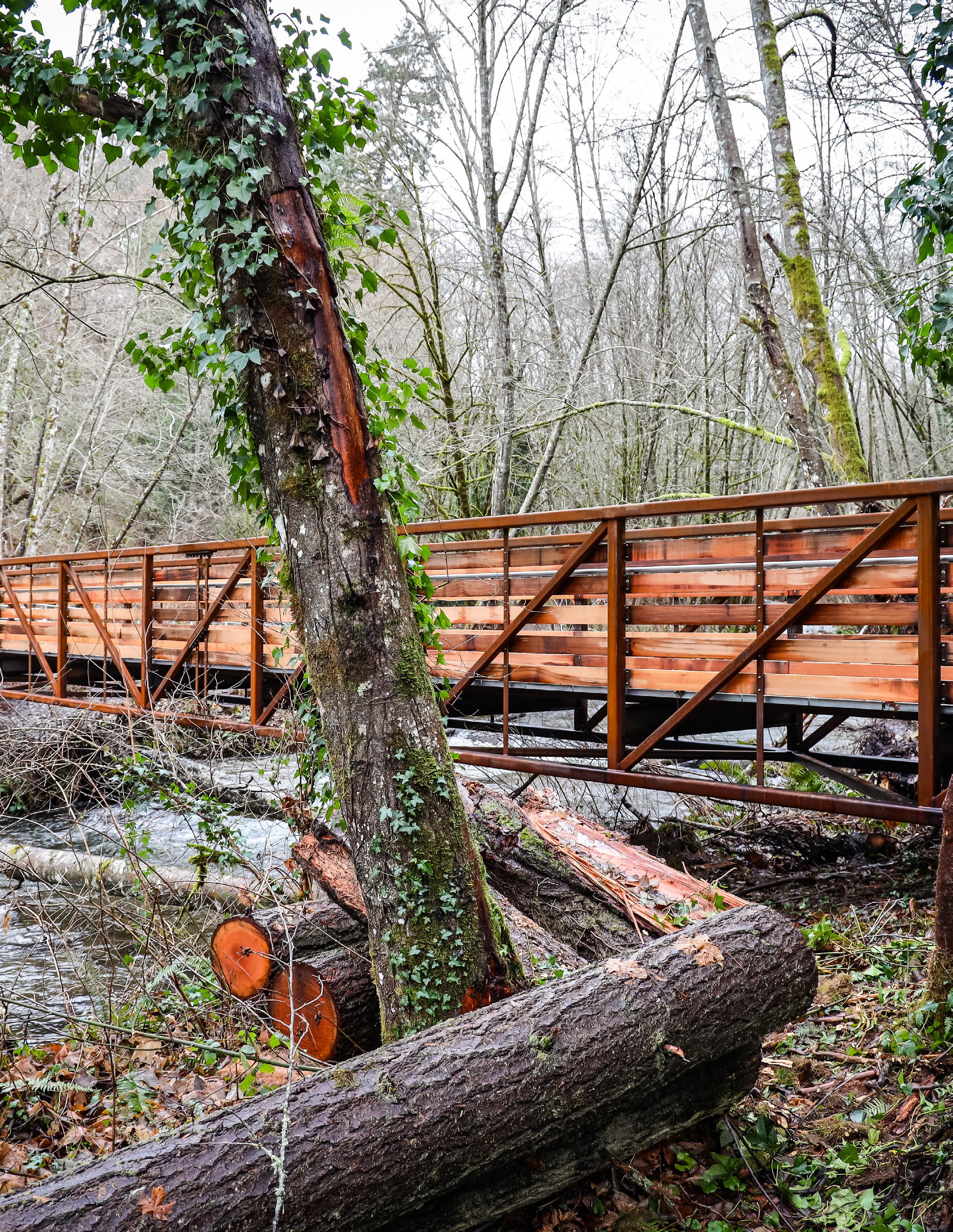 Trail and culvert reconstruction was completed following damage from a 2021 creek washout. The new culvert is larger and large woody debris was added to the stream system to assist with habitat and water flow.