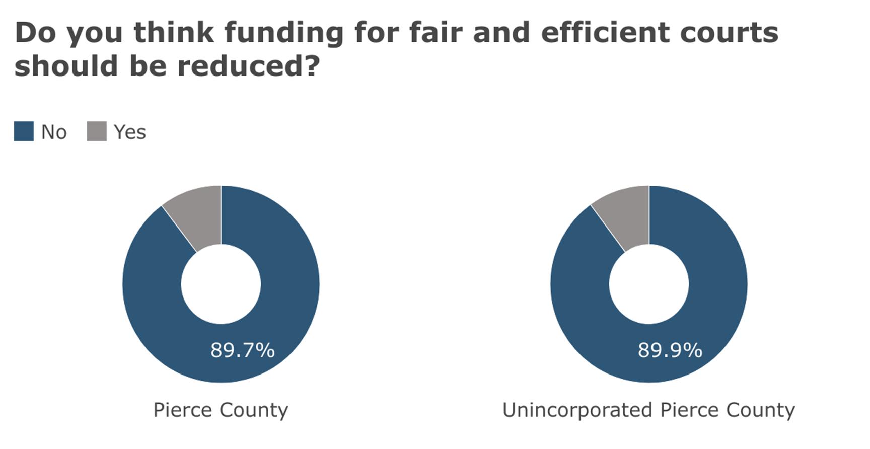 One out of every three residents* ranked fair and efficient courts as a low priority for Pierce County funding.