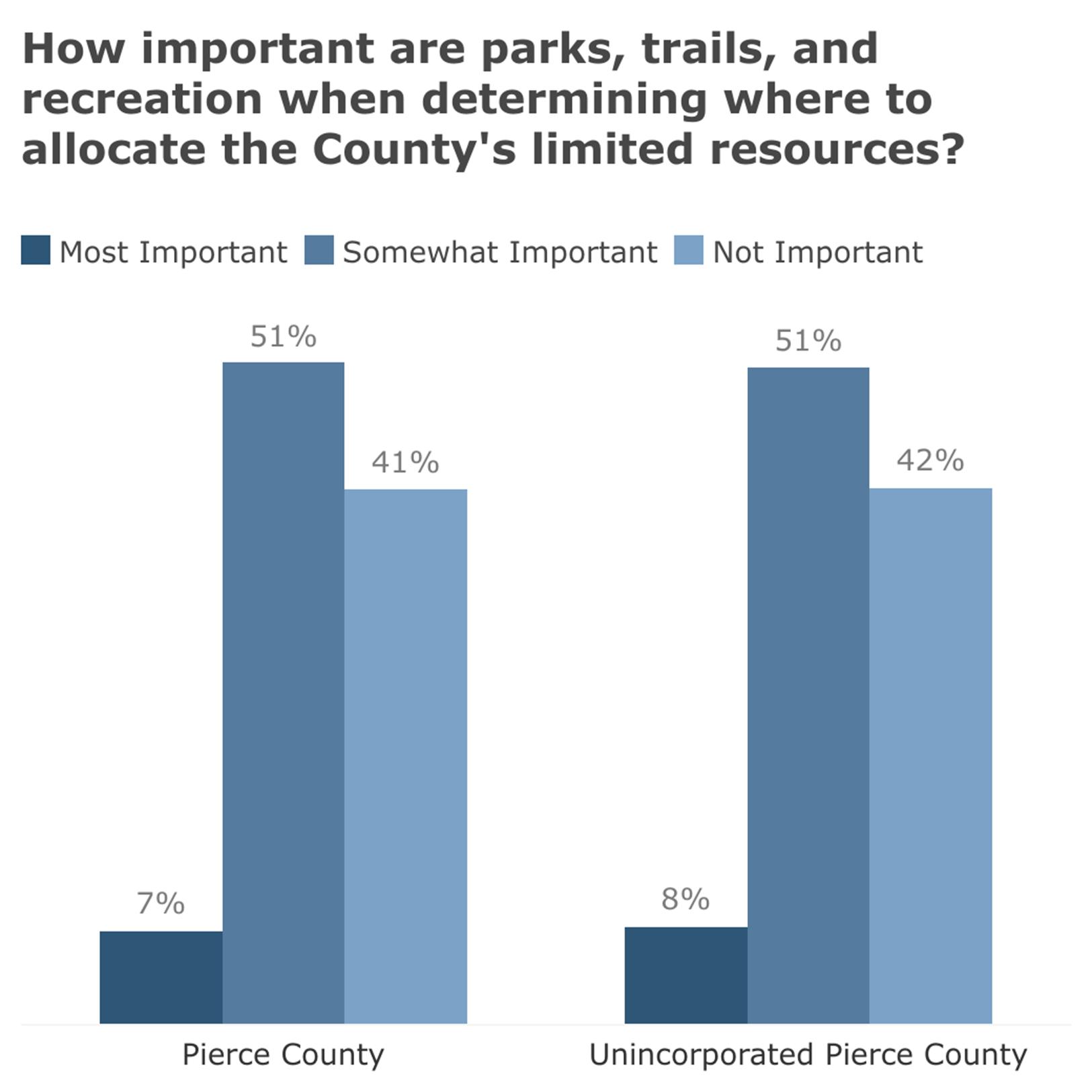 Two out of every five residents* indicated parks, trails, and recreation were not important when allocating funding.