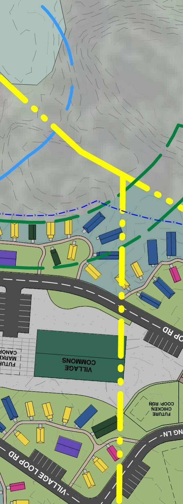 On the west side of the property there are approximately 21 buildable acres where we plan to locate all the living units, resident services, gathering spaces, additional microenterprises, administrative offices, and a Village Commons for large gatherings as well as clinical and case management services. Living units will be arranged in neighborhoods