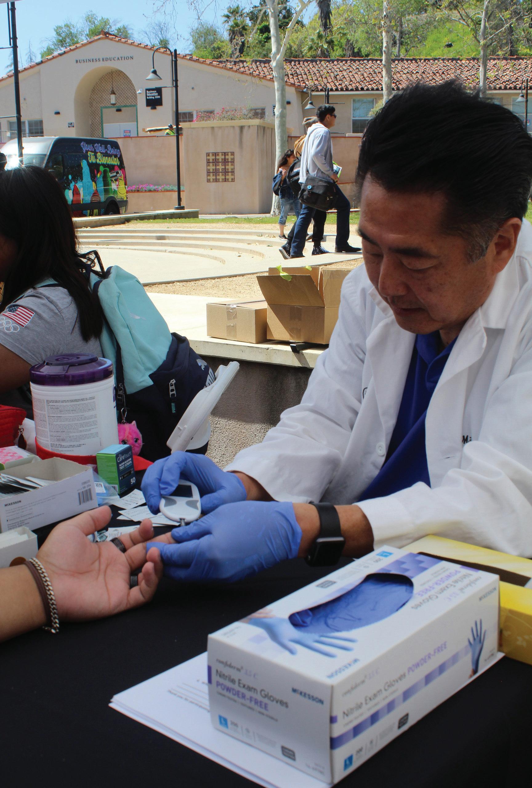Photo by Audrinna Meza Pierce College Medical Director and Physician Mitchell Nishimoto checks students' blood pressure levels to make sure they're on a healthy path, in Woodland Hills, Calif., on April 19, 2023.