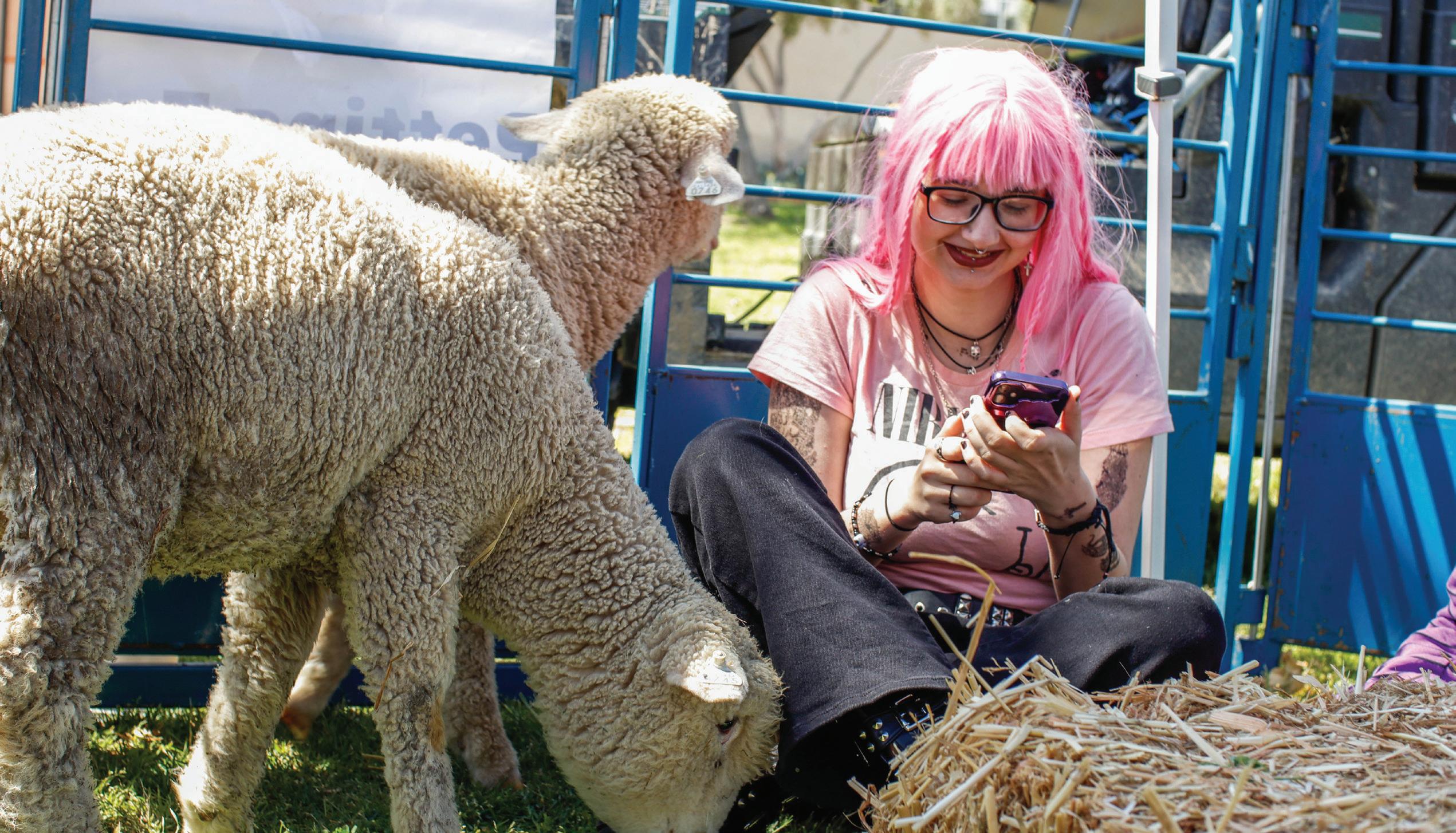 Veteranary Science Club student Emily Turovsky hangs with the animals at the petting zoo at Pierce College in Woodland Hills Calif., on April 19, 2023.
