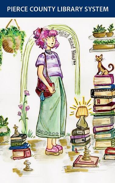 Rune, a frequent Buckley Pierce County Library visitor, saved more than $40,000 in 2023 by using her library card.