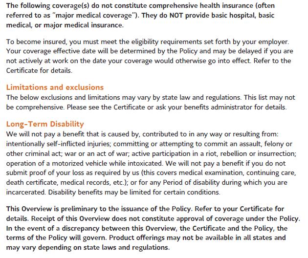 The examples included in this chart are not all-inclusive. Please speak to a Benefits Representative to learn more.