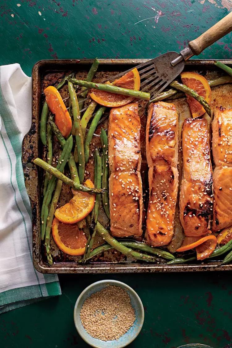 Honey-Soy-Glazed Salmon with Veggies and Oranges