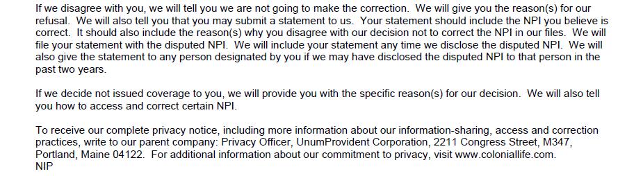 Any information Colonial obtains pursuant to this authorization will be used for the purpose of evaluating my application(s) for insurance or eligibility for benefits. Some information obtained may not be protected by certain federal regulations governing the privacy of health information, but the information is protected by state privacy laws and other applicable laws. Colonial will not disclose the information unless permitted or required by those laws.