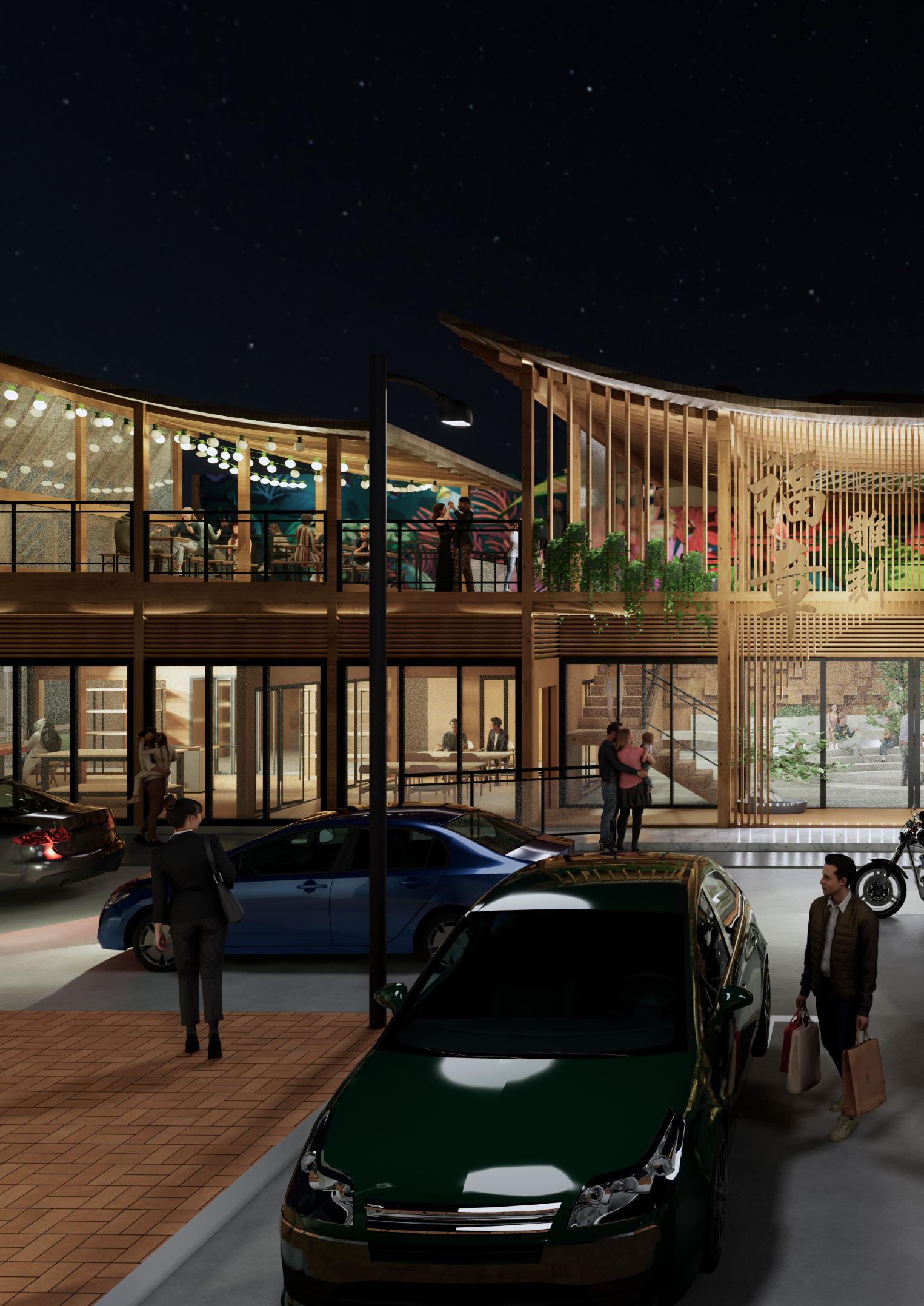 To attract people while blending with Southern Chinese site context, fuse modern with traditional by having modified traditional architectural features.