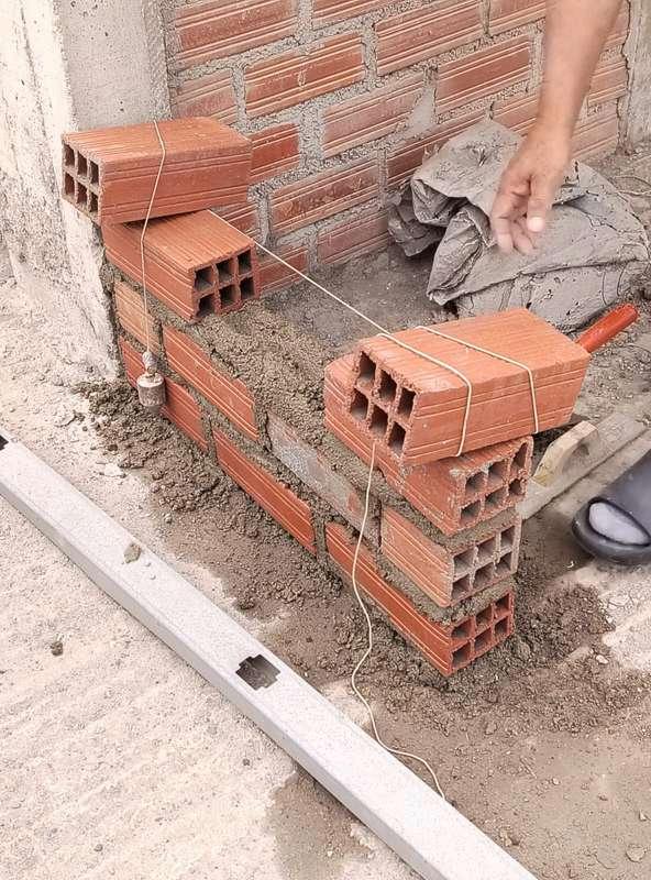 YA CON EL CORDEL PODEMOS COLOCAR LOS DEMAS LADRILLOS Y DEJANDO ESPACIO PARA LA JUNTA VERTICAL