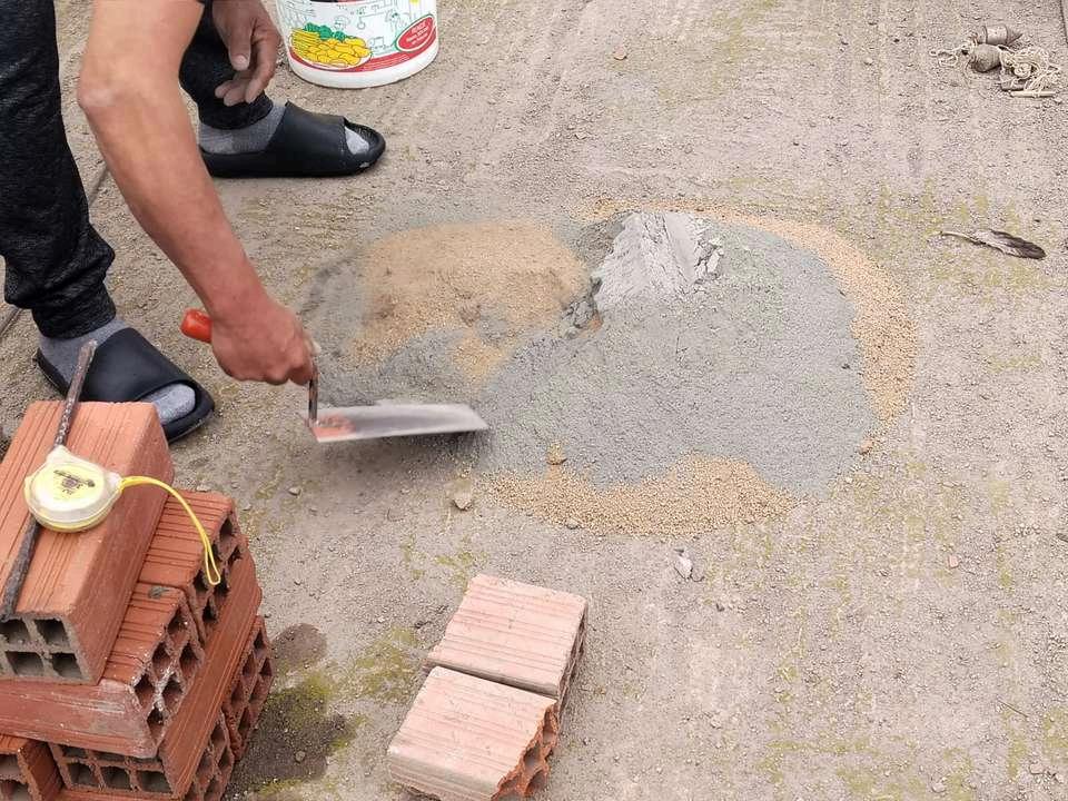 1 Bolsa de cemento Agua 1 1/2 Buggies de arena gruesa