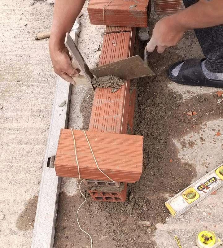 realizamoselmismoprocedimientodelosapoyosprovicionalesyelcordelguia ycolocamoslosladrillosdandogolpesyDEJANDOlasepaciondejuntavertical