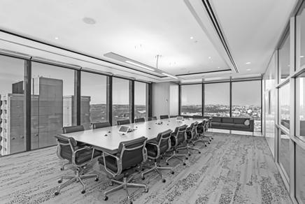 The design emerged from the site’s long and narrow dimensions, which didn’t suit a conventional central core structure. To address this, 64-meterlong and 21-meter-wide floor plates were positioned to the east of the site. These 21-meter widths are created in a single span, eliminating columns from the entire floor plate. This makes it the largest column-free span in any Australian office building, offering over 1,200 square meters of unobstructed space when standing from one end to the other.