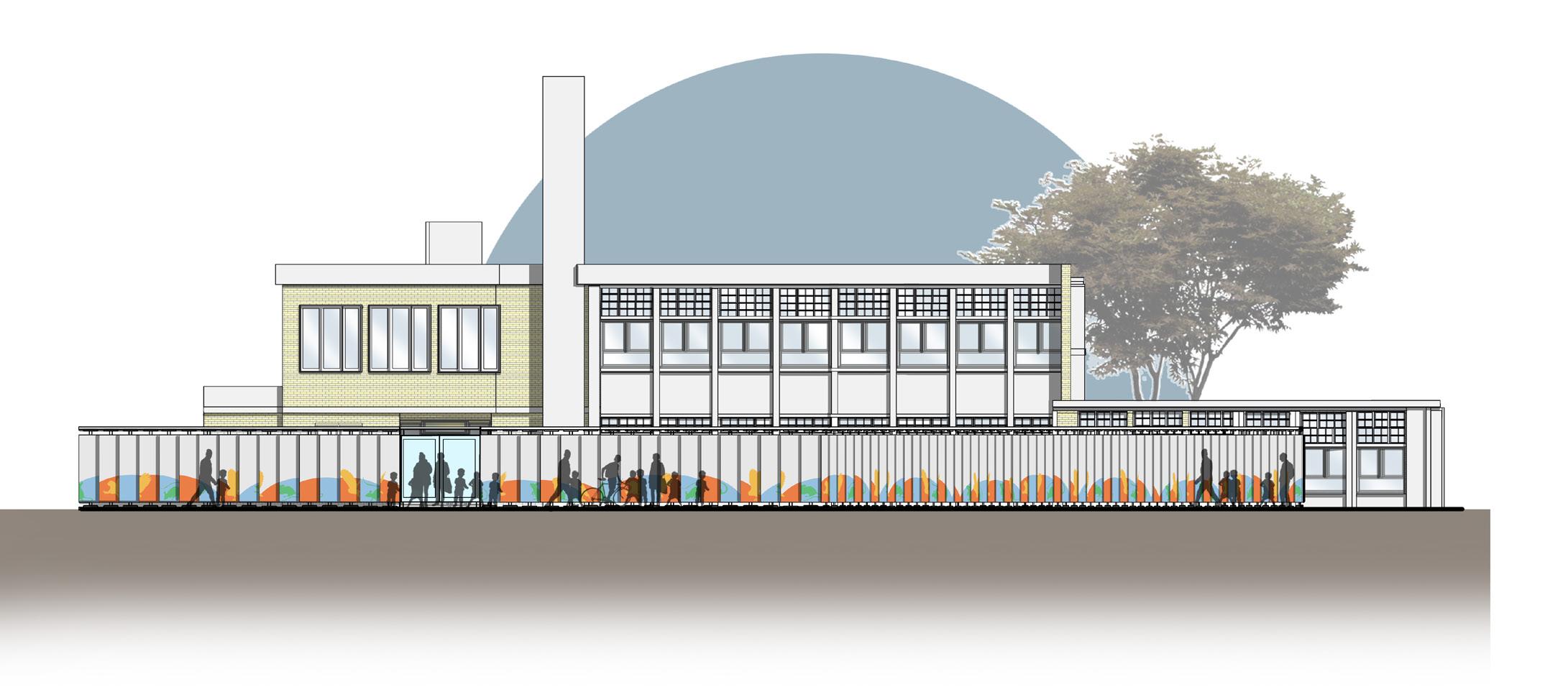 Le projet se situe dans une école primaire de la région parisienne. L’objectif a été de transformer l’intérieur du bâtiment, notamment le hall d’entrée, afin d’améliorer la vie des enseignants et des élèves. Actuellement, l’ensemble est en béton avec des murs peint en blanc. Le choix a donc été fait de les conserver afin de mettre en valeur les éléments ajoutés qui sont en bois.