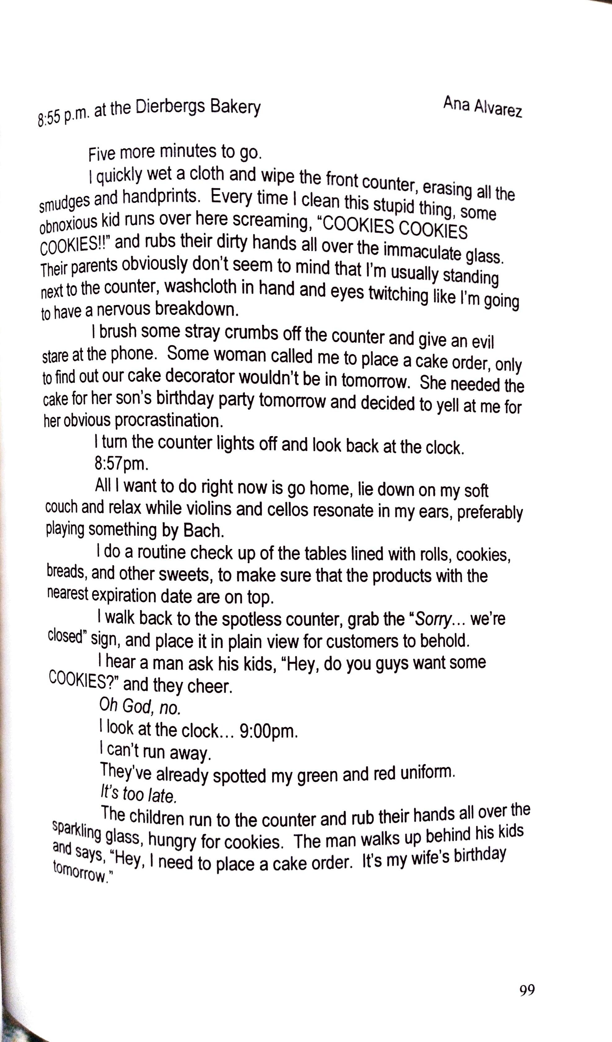 Watch What ls Coming ') Li Shi The Ed ge of the Po nd in th e Win ter C)(, J amie Kerry A Tw ist on th e Snow globe Theory 1)7 Jami e Kerry Block 98 J essica Posch e l 8:55 p .n1. at the D ie rb ergs Ba kery ')9 Ana Alvarez Unremarkabl e 100 Keely Shaw Old Town 102 Birgit Noll Hardball Publishing 103 Anne Earney Essay Contest Winners 105 On the Road to Existential Despair 106 David Huxel