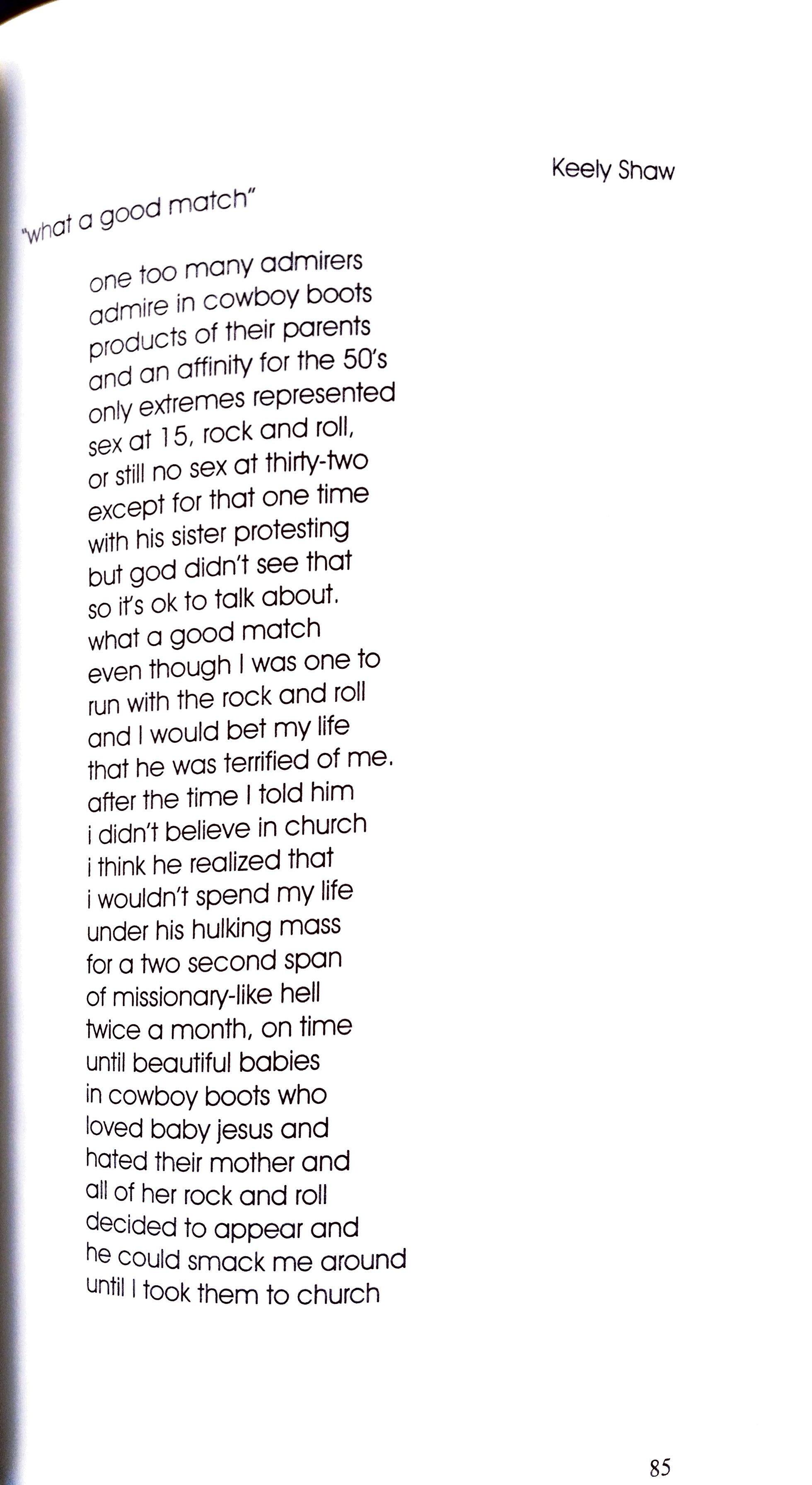 She could sing like you've never heard m your life. That c. t was doubly true because she wouldn't have sung in front of you 1ac . h 1 anyway. She sang to her c~t. Som~time_s s e wou d feel especially brave and she would sing m a choir or m front of a church . Strangely enough, in a church, surrounded by kind people and old people who couldn't even hear her, she was the most nervous. Must be with God watching her there and all.