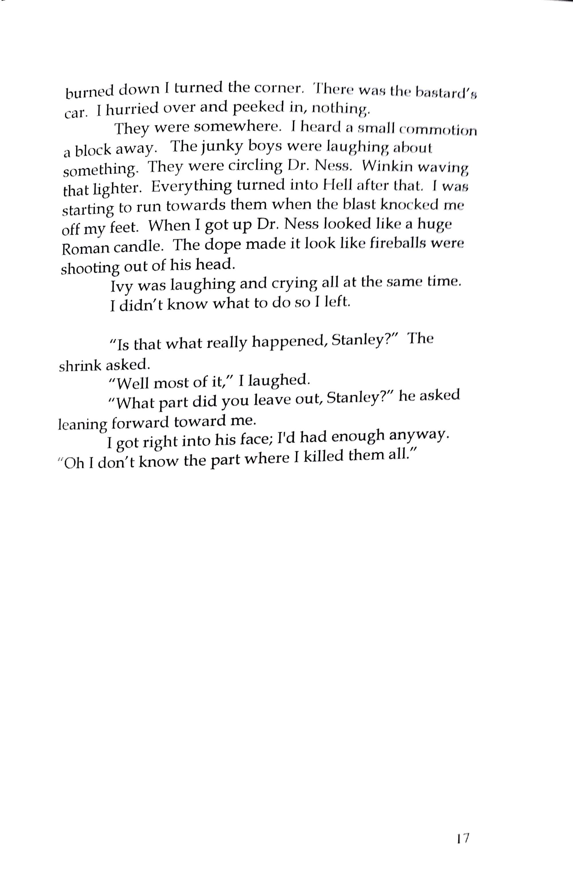 Consider the sad situation and the pathetic existences that the (again, only slightly fictionalized) characters of the s!ory lead; drinking, drugs, prostitution, random sexual escapades, stealing rather than working, using each other (and others beyond their immediate circle), drifting without goal or direction, broke and penniless rather than working, domestic abuse, fathering multiple children without attempting to care for them, destruction of property, pathological risk-taking, all to name afew. (This should not, incidentally, be seen as a list of things offensive to my morals: certainly not; I am exceedingly libertarian and, as such, am not offended by other peoples' choices for themselves. Rather, I mean only that such essentially negative behaviors, when combined with other essentially negative behaviors and to the exclusion of more positive behaviors, is highly suggestive of some manner of underlying pathology. I am also acutely aware of the highly subiective nature of labeling such things as 'negative' or 'positive,' however I assume some level of intuition on the part of the reader that using other persons, for example, is fundamentally negative in nature. This is not ~o suggest, however, that they need to be 'cured' of their behaviors, nor in some way coerced into changing their lifestyle. It is merely to suggest a broad question of whether or not such behavior is in any sense of the word 'h Ith , , · ' ' ea or good' for an individual). .