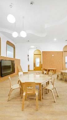 The Dining Hall is a warm and welcoming space with a full-height curtian wall opening towards the landscape. We proposed serigraphic glass using local tree’s leaves pattern.