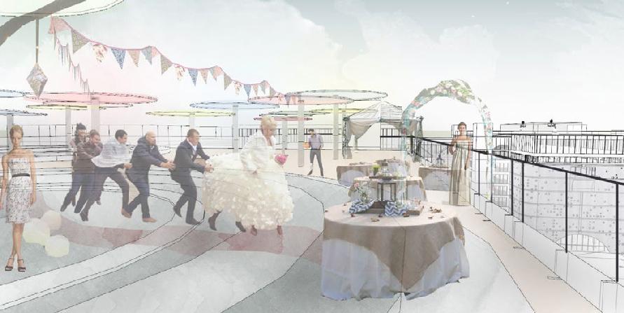 To keep up with the metaphor, we proposed to cut out openings in the roof according to local architecture window frames pattern. It can provide interesting and beautiful shading forms. The rooftop is planted and and arranged as a park. The structure and the trunk of the trees are mixing with each other, creating the impression of a forest.