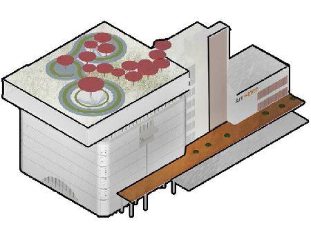 façade. The usage of pre-fabricated panels, such as concrete or brick walls and windows, allow modularity and flexibility are advantages for the building phase and also for the future.