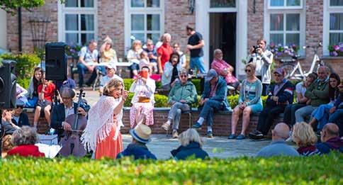 Zwischen den Konzerten können Sie in aller Ruhe durch die Straßen schlendern und in den offenen Ateliers und Schaukästen bildende Kunst genießen. Ein Festival ist kein Festival ohne Essen und Trinken, und dafür gibt es im Dorf zahlreiche Möglichkeiten. Speziell für das Festival haben die örtlichen Gastronomiebetriebe köstliche HoogtijOptionen auf der Speisekarte. Lassen Sie sich auf einer Terrasse nieder oder genießen Sie einen Snack von einem der Food Trucks neben der Grote Kerk. Eines ist sicher: Das Hoogtij-Festival ist ein kultureller Publikumsmagnet, den man nicht verpassen sollte.