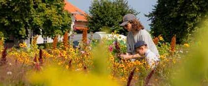 in te poten. Hekwerkjes knutselen om tomaten en boontjes tegenaan te laten groeien. En aardbeienplantjes in verhoogde bakken zetten, zodat de vruchten niet op de grond hangen.