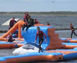 Een speeltuin, maar dan op het water. Het Aquapark van Schotsman Watersportcentrum aan de rand van het Veerse Meer net buiten Kamperland (schotsmanwatersport.nl) biedt die gouden combinatie. Kinderen kunnen er urenlang spelen. Lekker rondplonzen, van de glijbaan gaan en springen en klimmen. De uitdagende waterspeeltuin is geschikt voor kinderen vanaf tien jaar.