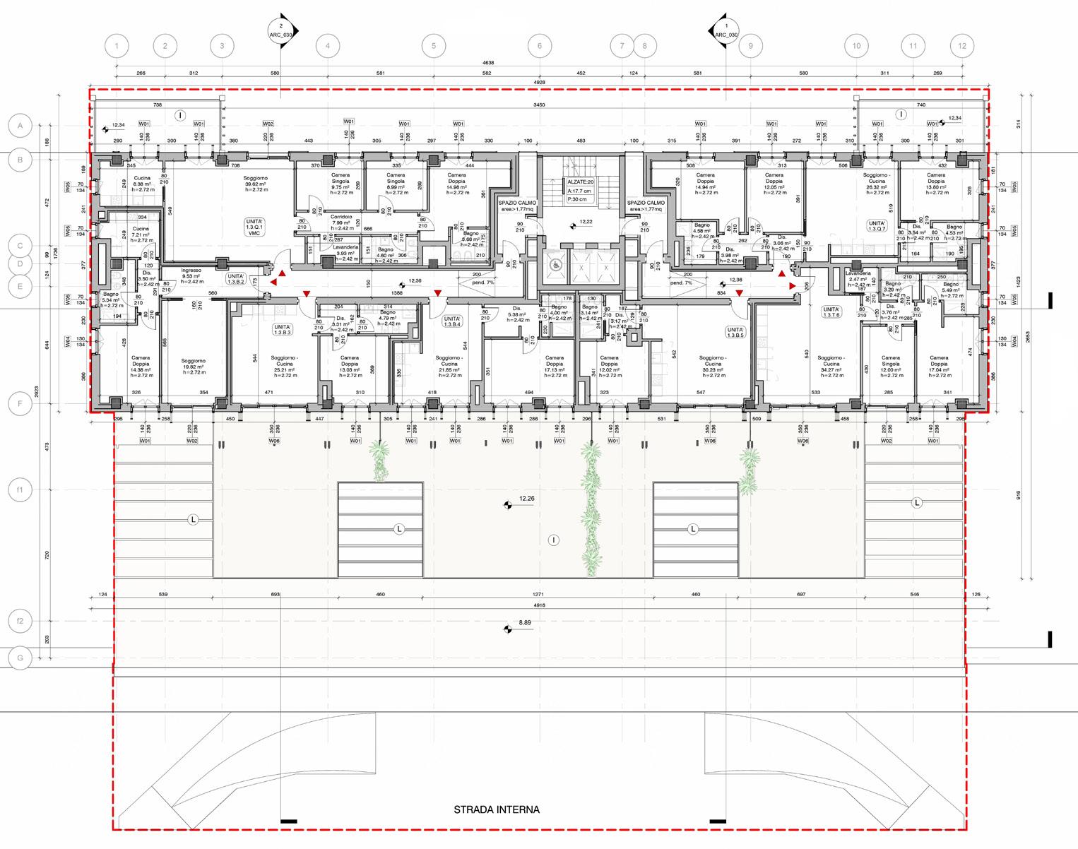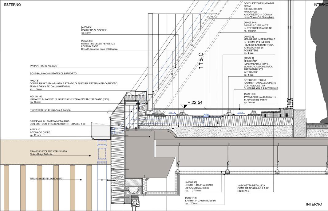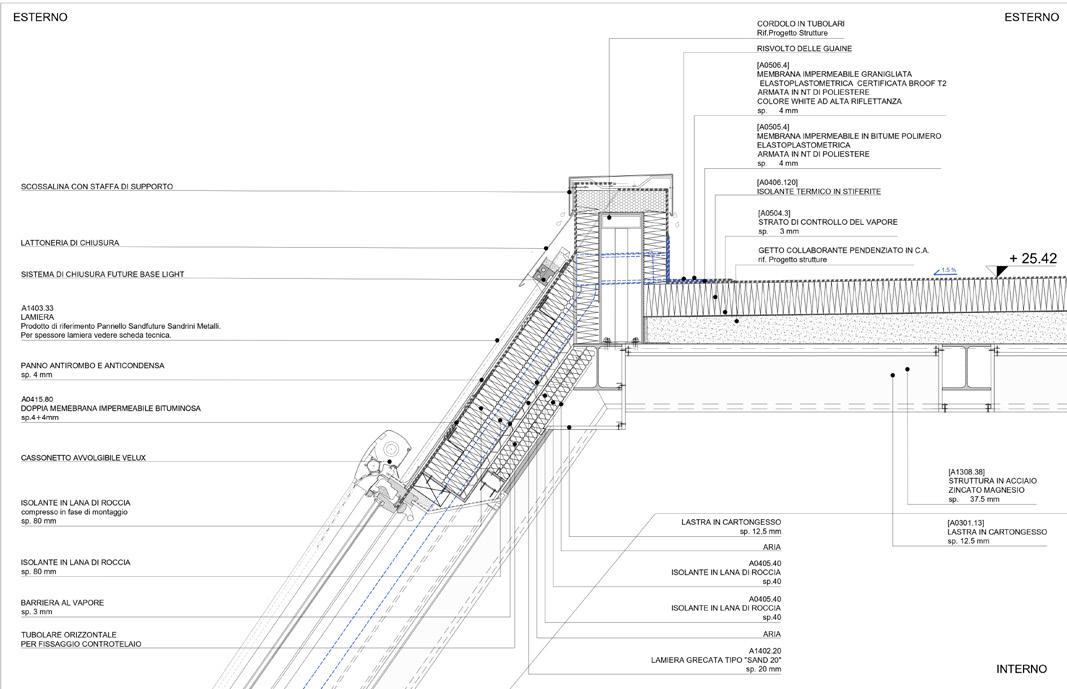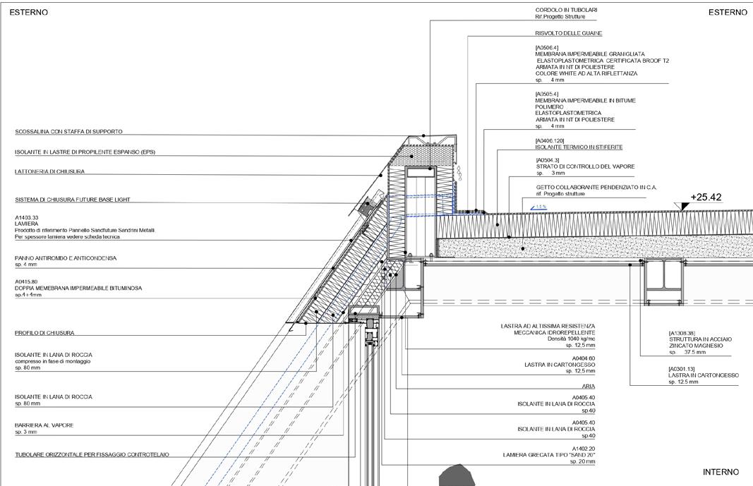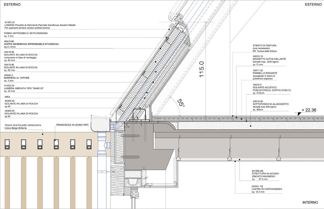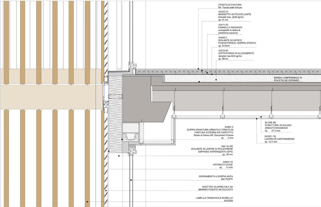 The design of the roofs foresees the maintenance of a lowered eaves line along the external fronts of the building, rising instead towards the inside of the complex to underline the centrality of the square.