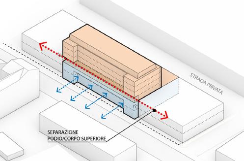 The objective is to allow at the various levels a relationship between interior and exterior typical of a single-family house.