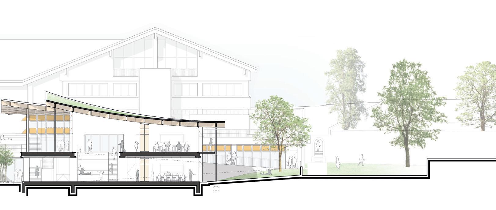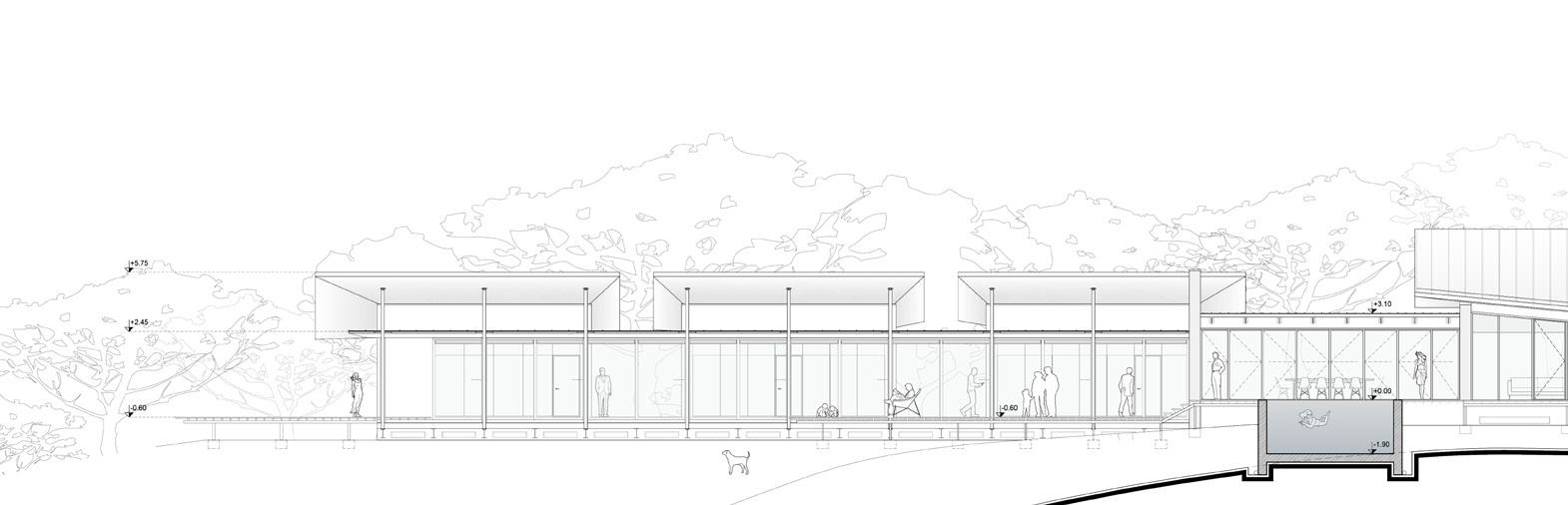The first one is a horizontal and transparent space, hosting the entrance lobby, providing a new gateway to the urban park.