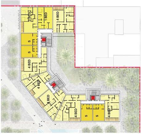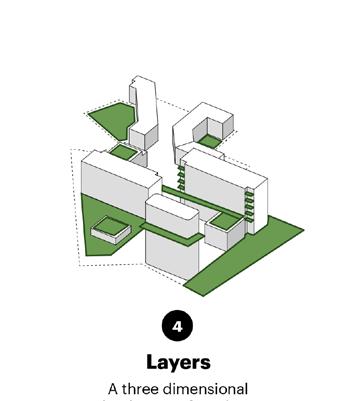 Four pavilions are organized around a central square, which is the heart of the project and generates the distribution