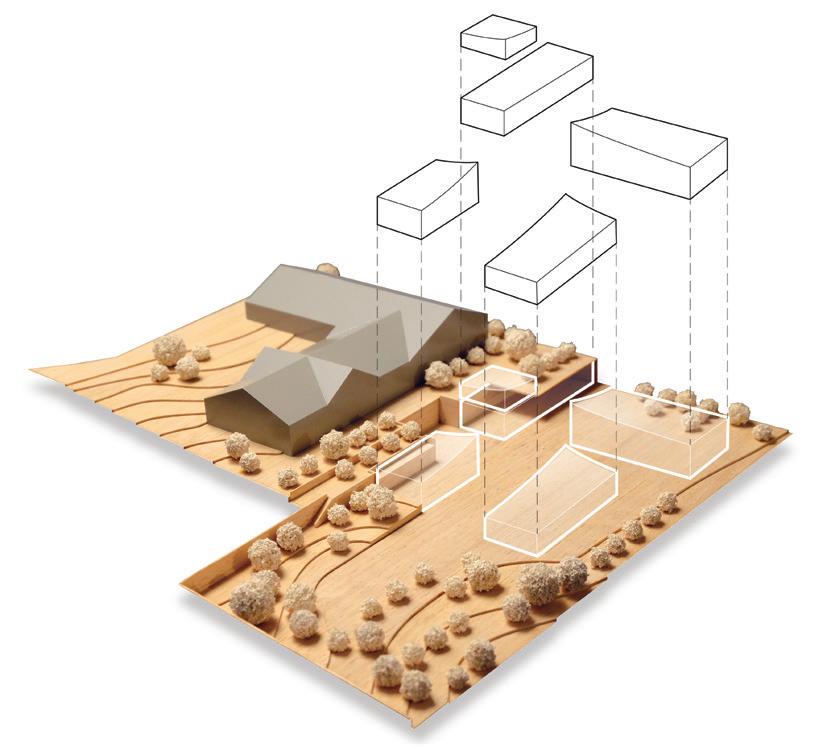 The intervention includes a main villa, guesthouses, a living module and a terrace-system forming the external rooms of the house.