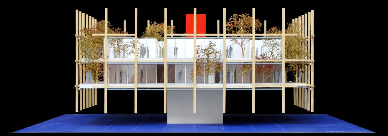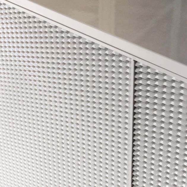 Expanded metal sheet permeates many parts of the intervention conferring a unitary approach.