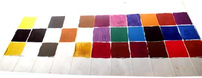 Nuanciers de peintures à l'huile et autres vernis testés avec du papier en chanvre à rouler des cigarettes pour savoir quand la peinture est suffisament durci pour être reprise avec une nouvelle couche ou un vernis!