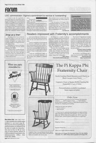 Drop us a line! The editors of The Star & Lamp welcome your letters. If you'd like to comment on something you've read, correct a mistake, or express your opinion about anything related to Pi Kappa Phi Fraternity, drop us a line. Send letters to: Letters to the Editor, do The Star & Lamp,P.O. Box 240526, Charlotte, N.C. 28224. All letters will be considered for publication. Letters to the editor are edited for grammar, style, fact, clarity and space. Anonymous letters are published only in special exceptions,so give us your name, chapter and university.