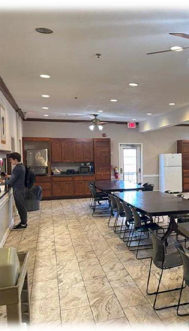 First-floor improvements include new tables and chairs in the dining room, new flooring and a new wall structure. The formal room has been improved with new flooring and furniture. The stairwells were upgraded with new runners, making the stairs aesthetically appealing. The first-floor bathroom was improved, and the house manager’s apartment was refreshed. The hallways, flooring, rooms and bathrooms on the second and third floors have all been improved. Additionally, the fire alarm, lighting
