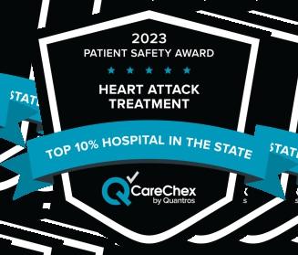 • Rated by CareChex – Top 10% of Hospitals in the Nation for Patient Safety in Heart Attack Treatment, Sepsis Care