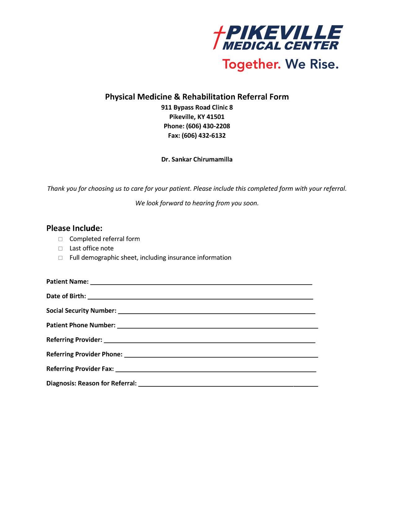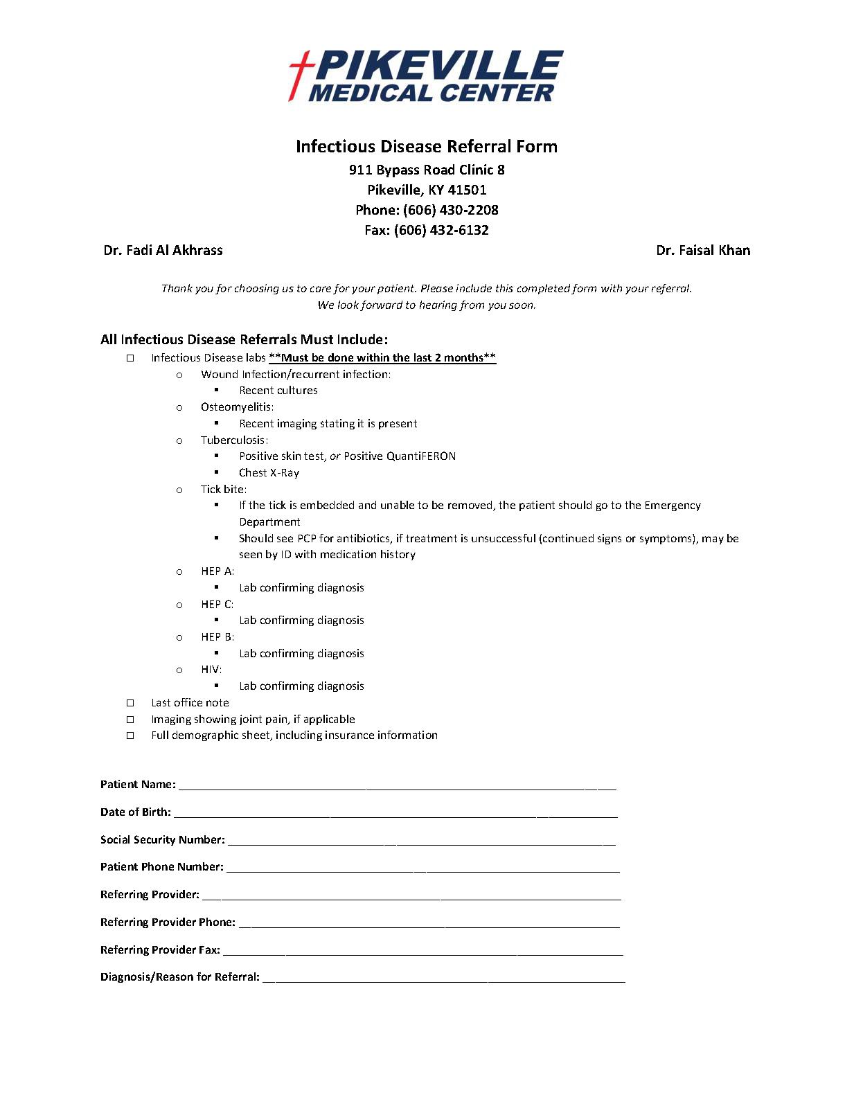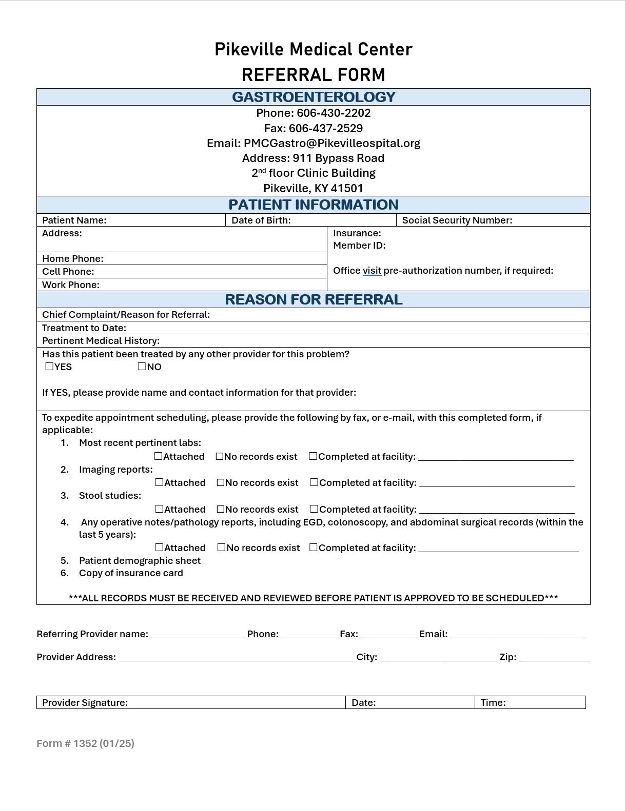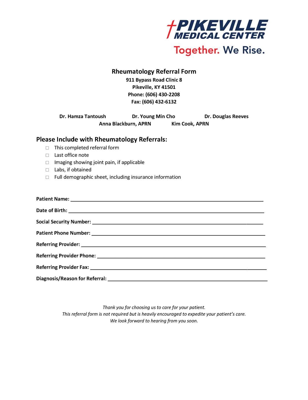 Please email all Rheumatology referrals to pmcrheumatology@pikevillehospital.org.