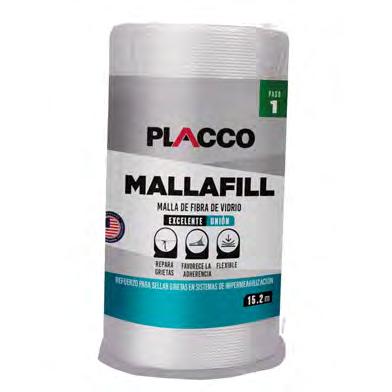 Mallafill es una malla de fibra de vidrio, flexible de color blanco diseñado para usarse con PLACCO SELLAFILL para reparar e impermeabilizar grietas, agujeros, costuras y juntas antes de las aplicaciones de revestimientos de cubiertas y terrazas.