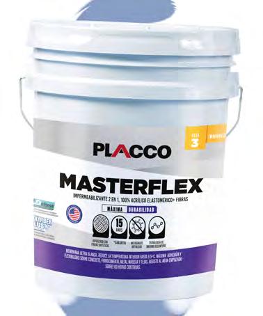 Masterflex ® es un impermeabilizante 100% Acrílico Elastomérico ultra blanco con alto contenido de sólidos, diseñado para proteger cubiertas y terrazas. Su fórmula garantizada reduce la temperatura al interior de la estructura hasta 9,5ºC y resiste al agua empozada sobre 100 horas continuas.
