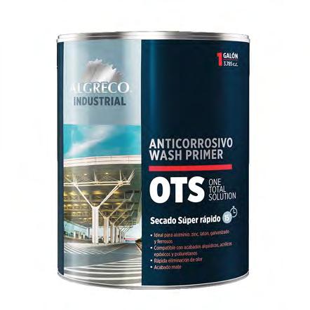 Anticorrosivo Wash Primer OTS 2 en 1 es ideal para proteger superficies metálicas ferrosas y no ferrosas. Su secado de 15 minutos lo hace eficiente para la aplicación sobre galvanizados, aluminios y zinc; con un amplio uso en la industria como carrocerías, tanques, de almacenamiento, puentes tuberías, puertas, pasamanos o maquinaria que se encuentre en ambientes de mediana agresividad.