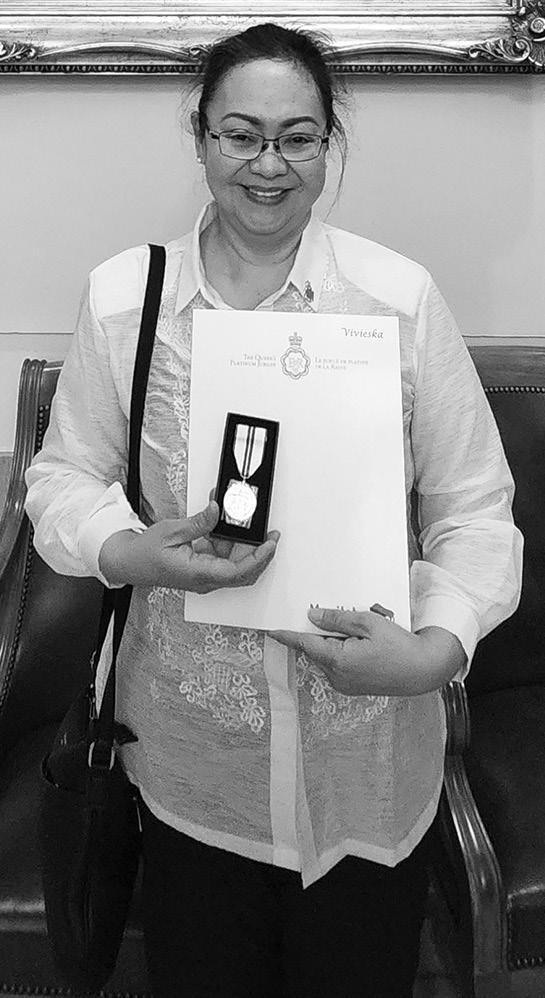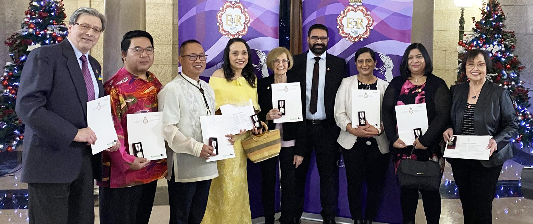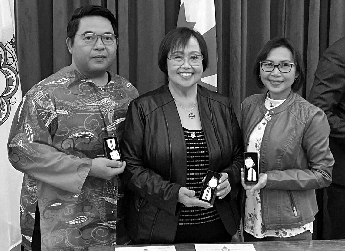 Among the medal recipients were nine Filipino Canadians namely: Emmie Joaquin, Rodrigo Lopez, Leila Castro, Ernesto Ofiaza, Jr., Porfiria Pedrina, Gary Alejo, Ernesto Garcia, Genalyn Tan and Lucille Nolasco-Garrido.