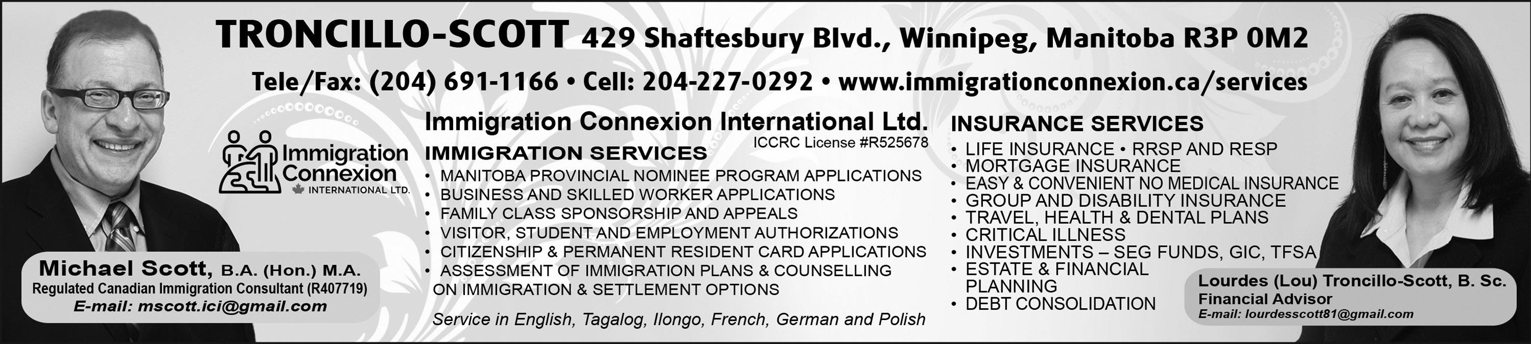 Michael Scott is a Regulated Canadian Immigration Consultant (RCIC, R525678) who has 30 years of experience with Immigration Canada and the Manitoba Provincial Nominee Program. He currently works as a licensed consultant with Immigration Connexion International Ltd. Contact him at 204-691-1166 or 204-2270292. E-mail: mscott.ici@gmail. com.