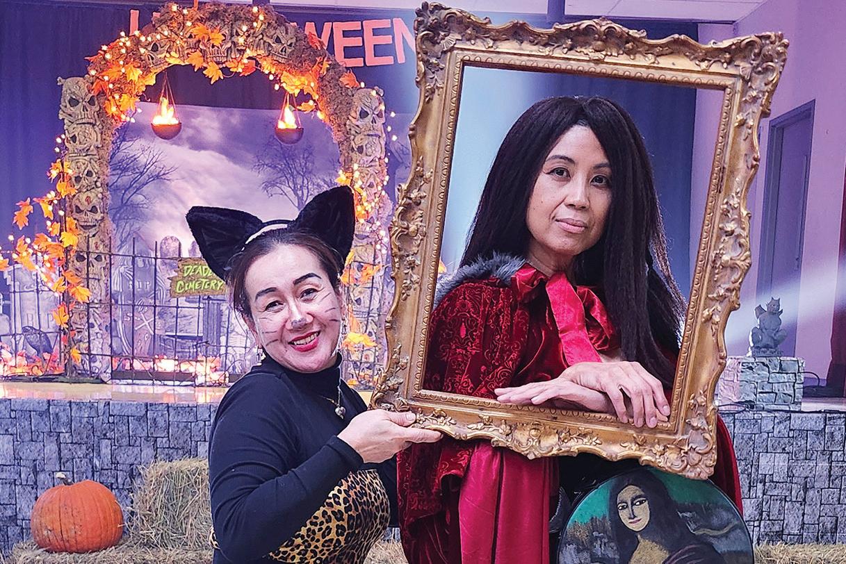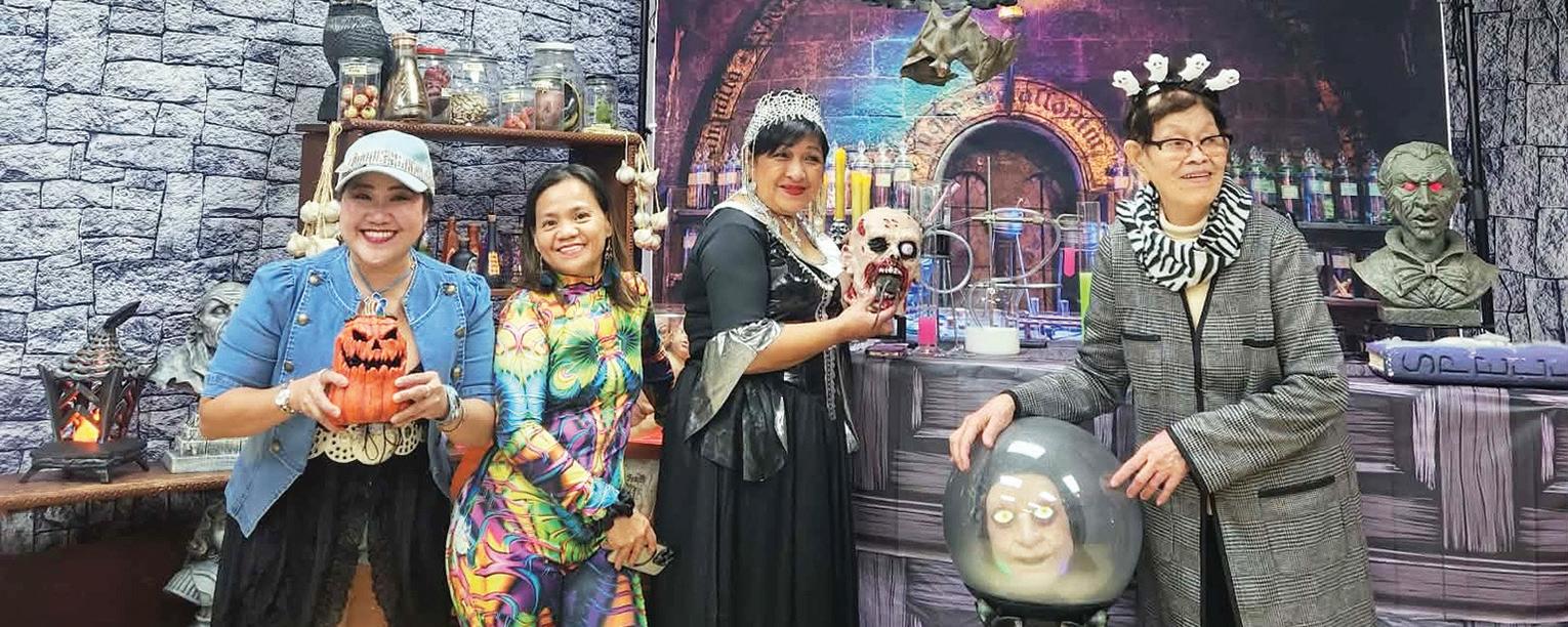 Best in Costume winner, Tita Aida with Sony Rebanal of Ruwis Hair Salon and Lucille Nolasco Most Scary winner, Dan Rempel