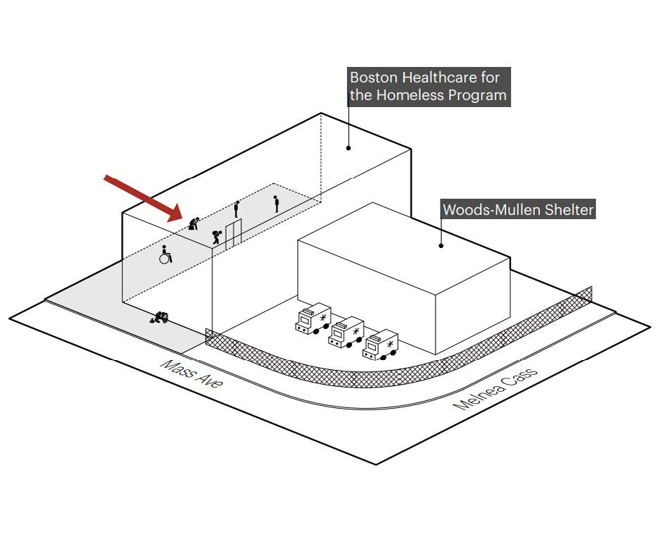 money) by preventing uncontrollable overdoses. What resources are 1/2 Mile Radius Melnea Cass/Mass Syringe exchange programs HIV/STI/STD Testing Opioid Treatment Programs Daytime Drop-In Recovery Emergency Shelters (2) Community Health Centers Homeless Shelters (3) Bridge Clinic (1) Self-Help Groups (8) Recovery Homes (4) 22 SITE CONTEXT & SITUATIONAL ANALYSIS DRUG CONSUMPTION ROOMS (DCR) COUNSELING HOMELESS MENTAL & PHYSICAL HEALTH COMMUNITY Goals for the Individual Get well through resources such as medications and therapy to become a contributing member of society. 1 City of Boston. Created by DoIT GIS Team Public Health Resource Map: Caring for Unsheltered Persons. boston. maps.arcgis.com DIGNITY PRIVATE ENTRIES PRIVATE DCRs PRIVATE EXITS STORAGE FOR BELONGINGS HEATING/ COOLING MEDICAL HYGIENE GREEN SPACE EXERCISE LIKE SKILLS GARDENS SUPPORT GROUPS AWARENESS DE-STIGMATIZING PSYCHIATRIC THERAPY JOB COUNSELING DRUG CLINIC What resources are currently available? 1/2 Mile Radius Mass/Cass Intersection Syringe exchange programs (2) HIV/STI/STD Testing Sites (8) Opioid Treatment Programs (2) Daytime Drop-In Recovery Services (2) Emergency Shelters (2) Community Health Centers (3) Homeless Shelters (3) Bridge Clinic (1) Self-Help Groups (8) Recovery Homes (4)1 What is the area currently lacking? 1/2 Mile Radius Mass/Cass Intersection Legal Substance Use Sites Restrooms Showers Locked Storage Adequate Lighting Adequate Housing Syringe Disposal (Vs exchange) Lack of Intervention - Violence, Drug Trafficking, Human Trafficking, Overdoses Esr Community Maps C MELNEA MASSACHUSETTS Goals for the Community Less exposure to crime, violence, and illicit drugs. Decreases emergency room and ambulance expenses (tax payer money) by preventing uncontrollable overdoses. 26 VISUALIZING THE PROGRAM ZONE A reception waiting area staff toilet client toilet office/meeting room ZONE B smoking rooms injection rooms observation area nurse suite office/meeting trash ZONE C resting zone office conversation ZONE D cafe kitchen trash office/meeting activity center home-ec classrooms showers laundry ZONE E locker room toilets laundry manager’s office kitchenette sleeping cots OUTDOOR F lockers smoking area outdoor interstitial spaces community garden BUILDING SUPPORT maintenance closets cleaning closets kitchen systems HVAC systems - smoke intake rooms electric/tel/data loading dock PUBLIC ACCESS PRIVATE ACCESS UNIDIRECTIONAL