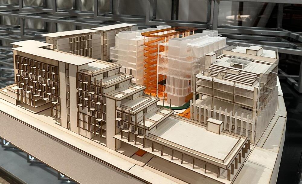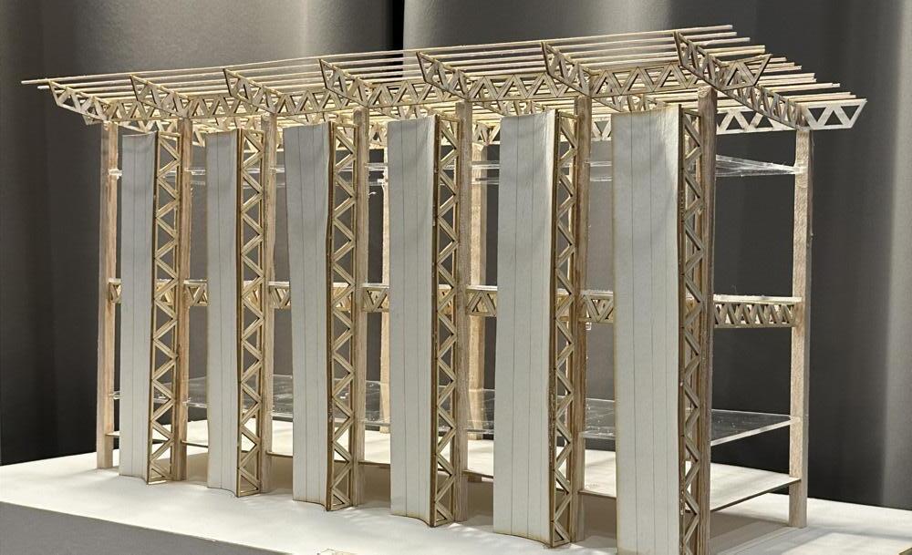 This model was created for the sports center project in my 4B studio design class in 2023, where I focused on learning about long spans and structures. As a result, I chose to emphasize the structural aspects in my presentation.