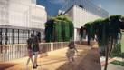 interconnected bicycle lanes and green pocket gardens providing shade and a natural feel, revitalizing the urban environment.