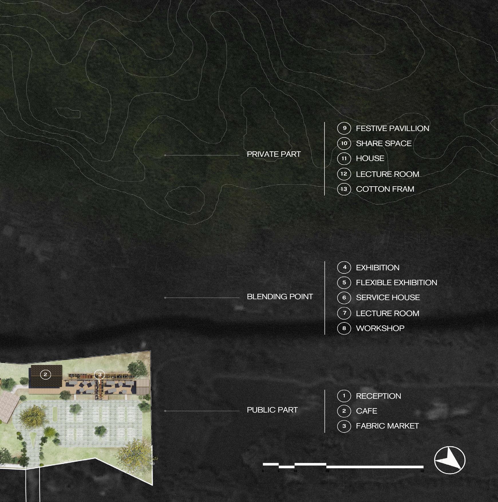 -Blending Point (Exhibition, Workshop): Central area for cultural exchange between native and non-native visitors.