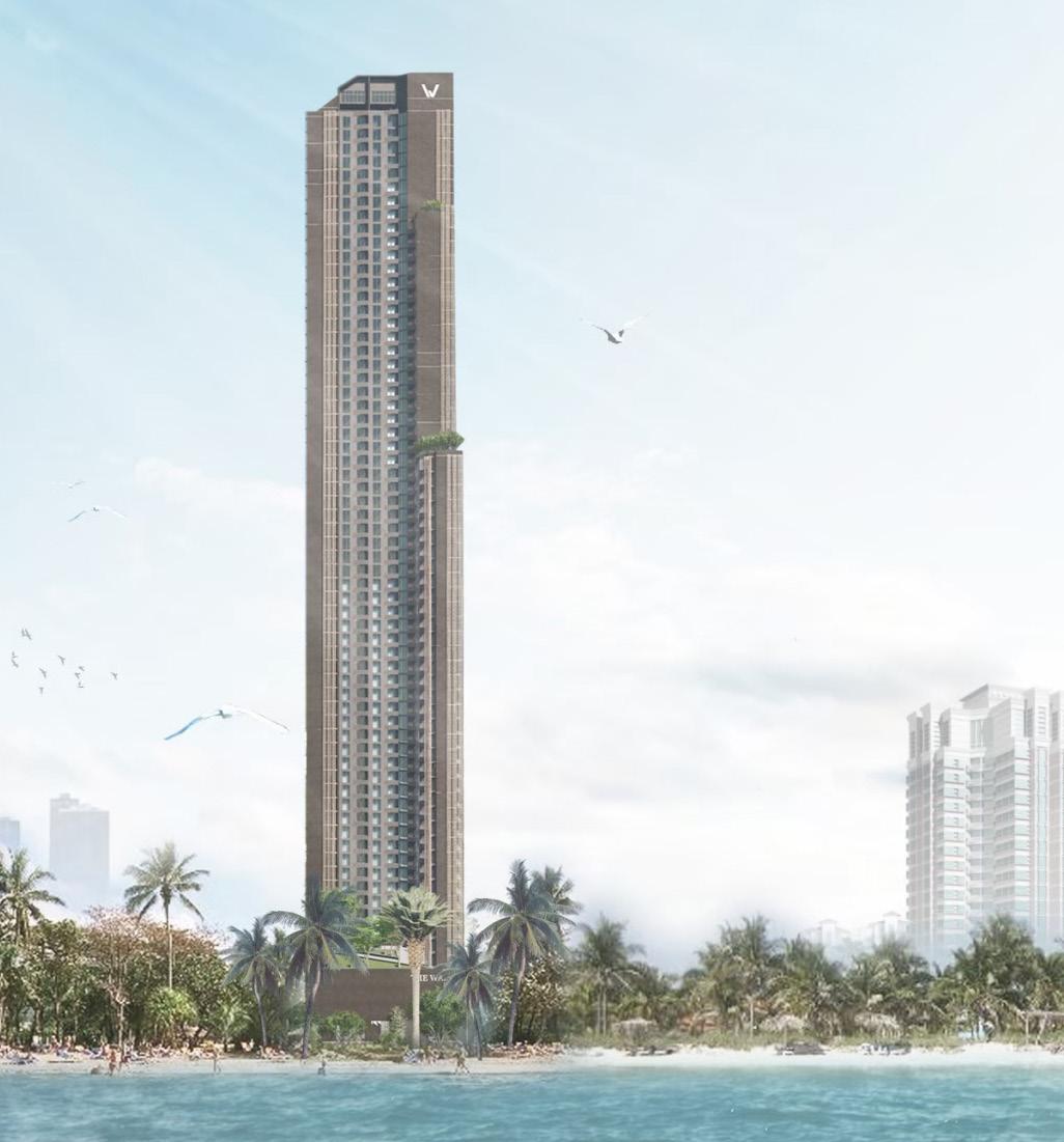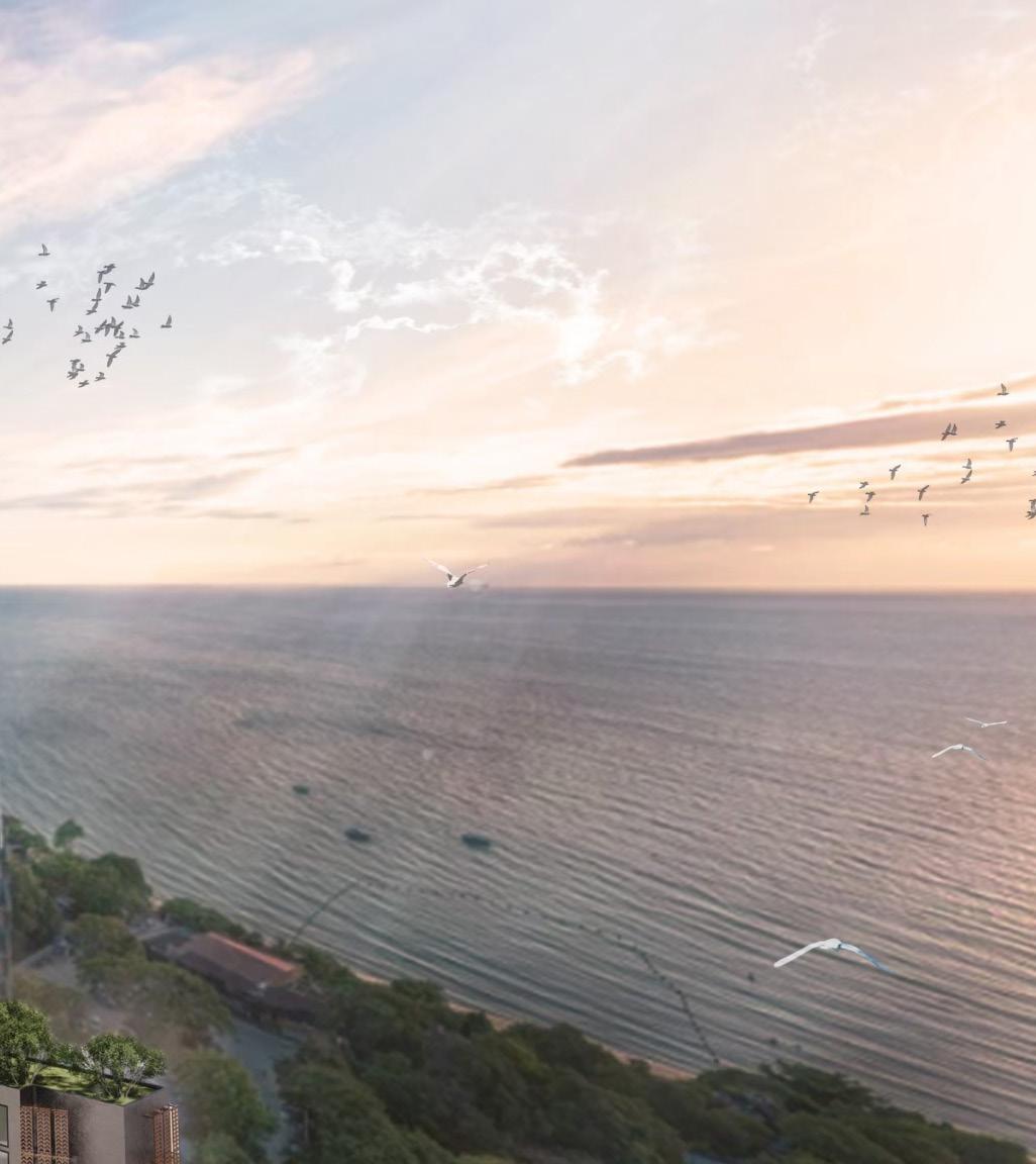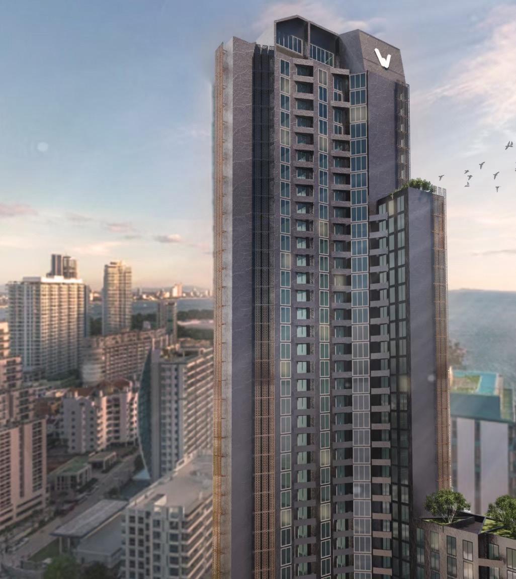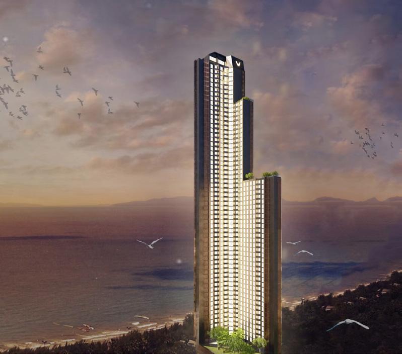 The Waltz, a beachfront condominium in Pattaya City, Thailand, features 38 floors with 3 dedicated to facilities and offers 5 unit types: Type A (28 sqm), Type B (30 sqm), Type C (35 sqm), Type D (42 sqm), and Type E (50 sqm duplex). Inspired by ocean waves, its design ensures every room faces the beach, with a descending height structure reflecting wave forms. The facade echoes wave patterns, harmonizing with its coastal environment for a distinctive living experience.