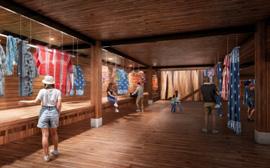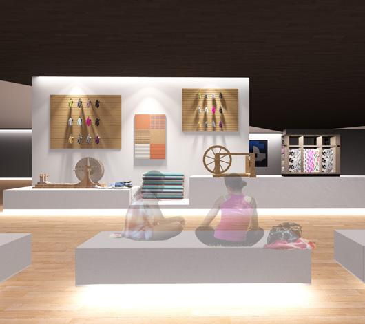 The workshop station offers an immersive experience in three traditional cloth-making processes: sewing, dyeing, and painting.