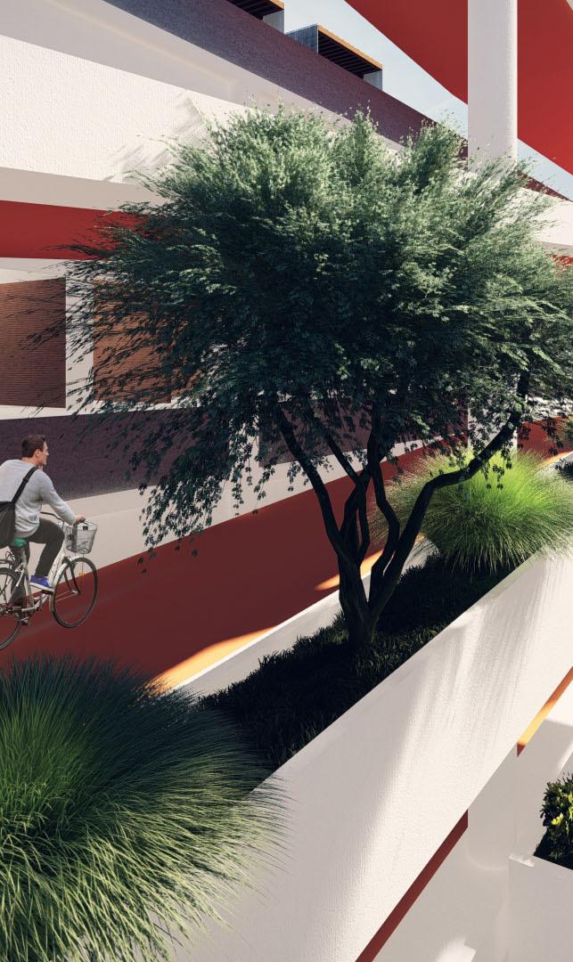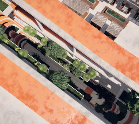We’ve strategically added green pocket gardens along the bicycle lanes for shade and aesthetic enhancement, aiming to create a vibrant, sustainable urban environment that promotes well-being and connectivity.