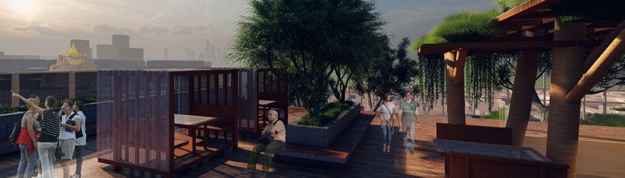 Additionally, rooftop areas provide sweeping views of Wat Saket Ratchaworamahawihan, enriching the project with local flavor and honoring the area’s cultural signifcance. This blend of modern sustainability and local heritage aims to foster community pride and connection.